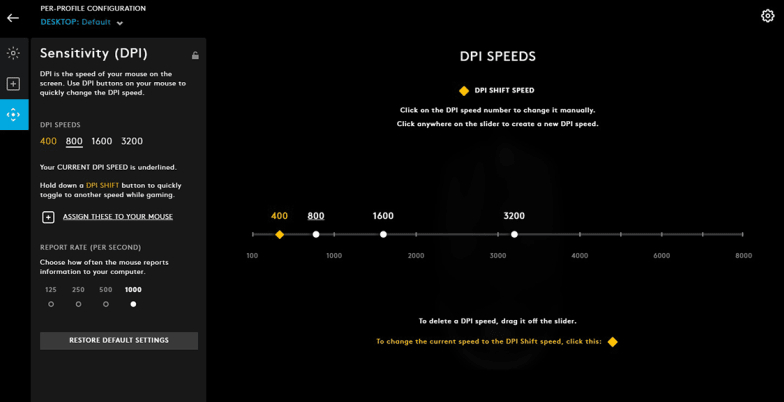 G203 sensoru 8000 DPI həssaslıq təmin edir. Həssaslığı tənzimləmək G203-da elə asandır ki, sadəcə sürüşdürmə zolağını hərəkət etdirirsən. 5 səviyyəyə qədər quraşdıra bilərsən və bir düymə ilə dəyişdirə bilərsən. Bu sensor müxtəlif oyun rejimləri və ya yüksək nəzarət tələb edən səviyyələr üçün idealdır, məsələn, snayper nişanı və ya sürətli klik tələb edən səviyyələr