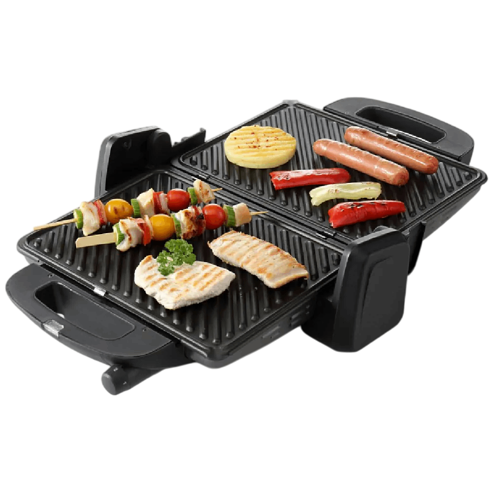 Cihazın qapağı 180° dərəcəyə açılır. Nəticədə 2 tavadan eyni anda istifadə edib daha çox yemək hazırlaya biləcəksiniz. Tavalar ikitərəflidir. Bir tərəfi qabarıqdır. Klub sendviçiniz üçün lazım olan çörəyi quruda, toyuqu hazırlaya bilərsiniz. Bundan başqa bu səth tərəvəzlər, sosislər, hətta steyklərin hazırlanması üçün də mükəmməldir. Sendviçinizi tamamlamaq üçün yumurtanı qızartmalısınız. Tavanı yerindən çıxardıb yastı olan tərəfinə çevirin. Yumurtadan başqa bu səthdə tərəvəz kotletləri, pankeyklər s. hazırlamaq olar. Ərzaqların ideal qızarmasını təmin etmək üçün 4 temperatur rejimi və qızartma dərəcəsi mövcuddur.