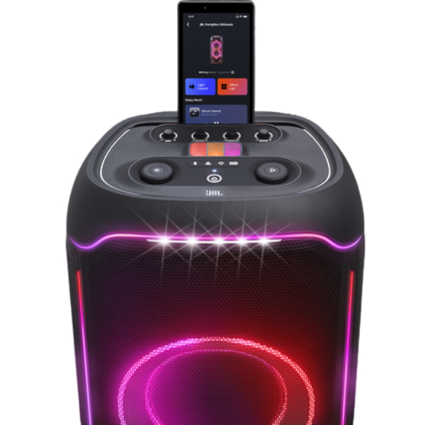 Məkanını həyəcanverici və emosional atmosferə çevir — PartyBox Ultimate bütün party akustik sistemləri arasında ən geniş və çoxölçülü işıq şousuna malikdir. Ulduzlu səma effekti, parlaq işıq zolaqları, strob işıqları və səthə proyeksiya olunan işıqlandırma ilə bu şou fərqlənir. Bütün işıq effektləri musiqi ilə sinxron şəkildə işləyir və yuxarı paneldəki idarəetmə tənzimləyiciləri ilə yanaşı JBL One tətbiqi vasitəsilə də asanlıqla idarə oluna bilər