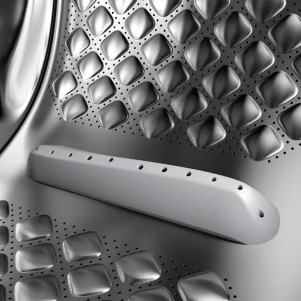 Yuma zamanı səs səviyyəsi 60 dB, sıxma zamanı isə 76 dB-dir ki, bu da cihazın kifayət qədər sakit işləməsini təmin edir. Buxar təmizləmə və Steam Refresh funksiyaları geyimlərinizi təzələməyə imkan verir, bu isə gündəlik istifadə üçün olduqca rahatdır.