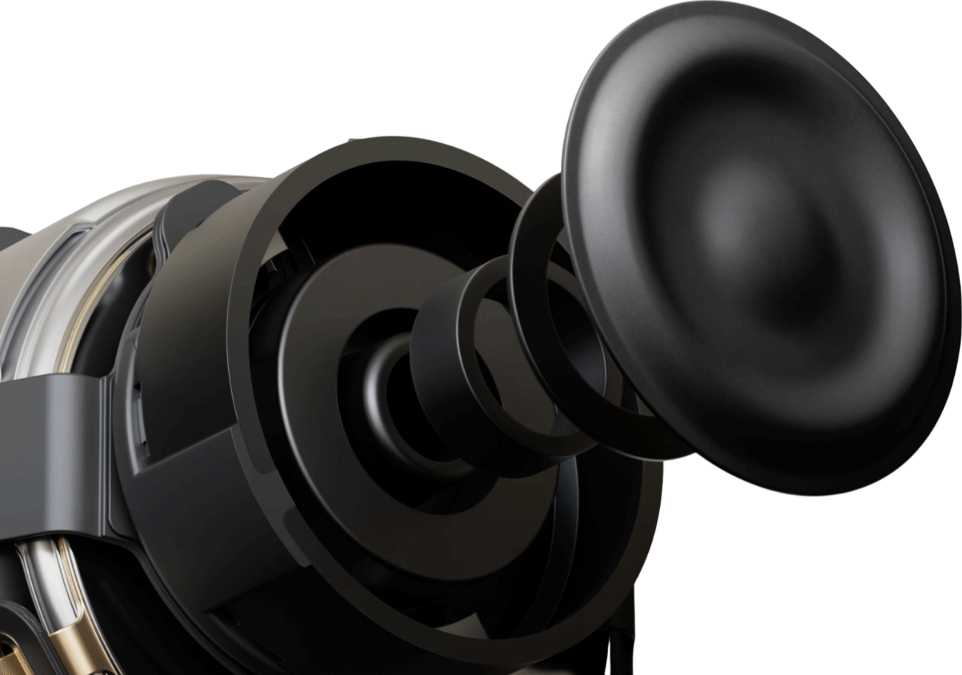 Hər qulaqlıqda xüsusi ikiqat dinamik mövcuddur. Bu dinamik elastikliyi sayəsində daha təmiz baslar və çox aşağı səviyyədə səs qırılmaları təmin edir