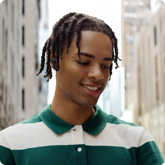 Galaxy AI tərcüməçisi ilə dil baryerlərini aradan qaldırın. Tərcüməni real vaxtda qulaqcığınızdan dinləyin və söhbət zamanı telefona baxmadan davam edin. Bu funksiya sizə istənilən yerdə əllərdən istifadə etmədən şifahi tərcümədən yararlanmaq imkanı verir