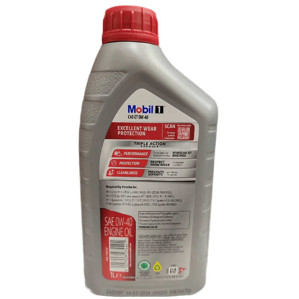 Porsche C40 GT, ACEA A3/B4, API SN, Porsche GT3/GT3 RS/GT3 Cup/718 Cayman GT4 RS
