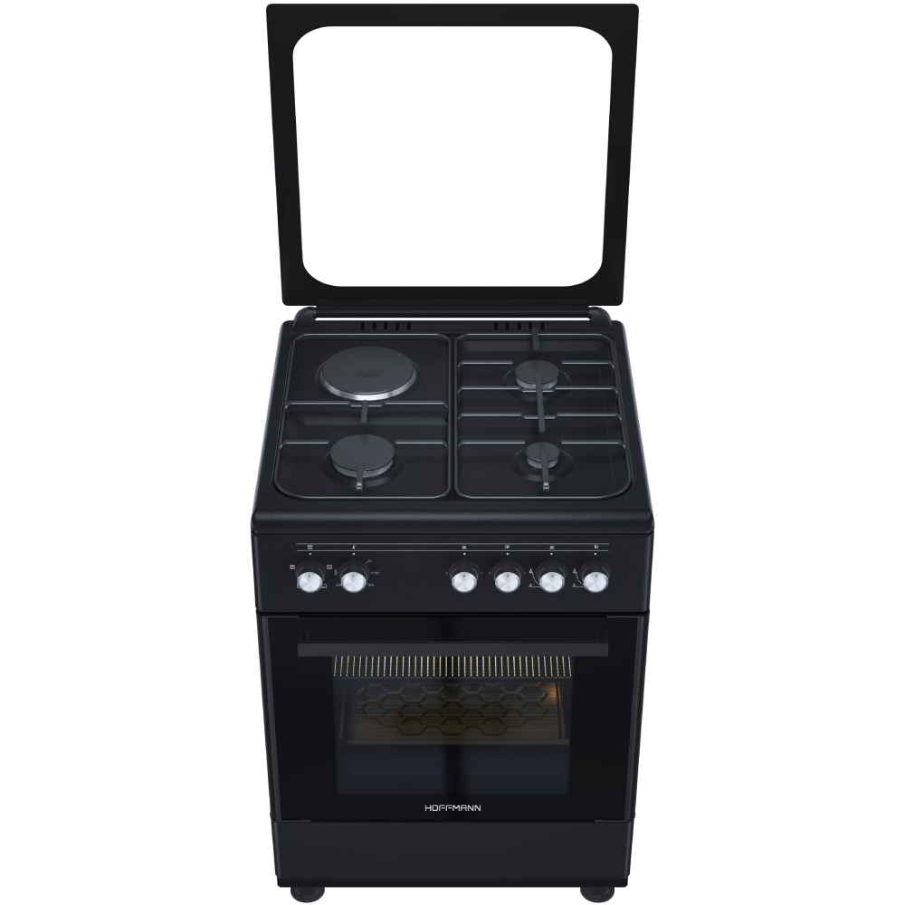 Плита HOFFMANN F767B — это надежное и удобное решение для вашей кухни. Она сочетает в себе электрический духовой шкаф и газовую варочную поверхность, что позволяет готовить разнообразные блюда с максимальным комфортом.